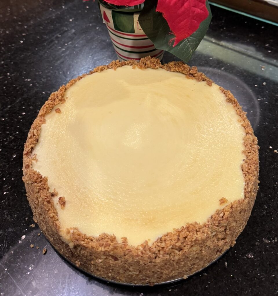 11. Remove the cheesecake from the oven and allow to cool. Cover it with foil and then place it in the refrigerator for at least 24 hours to allow it to season. The flavors will become richly enhanced as it cools overnight.