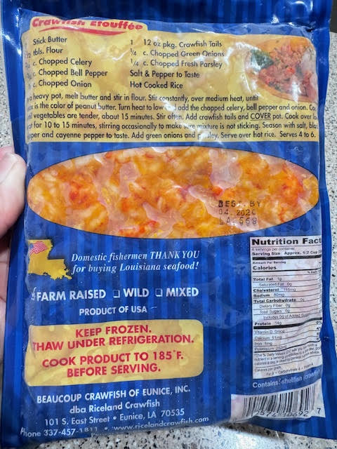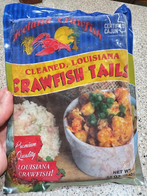 • Add the crawfish tails to the vegetables. Put a little water in the crawfish bag and pour the remaining crawfish and juices into the pot of vegetables.