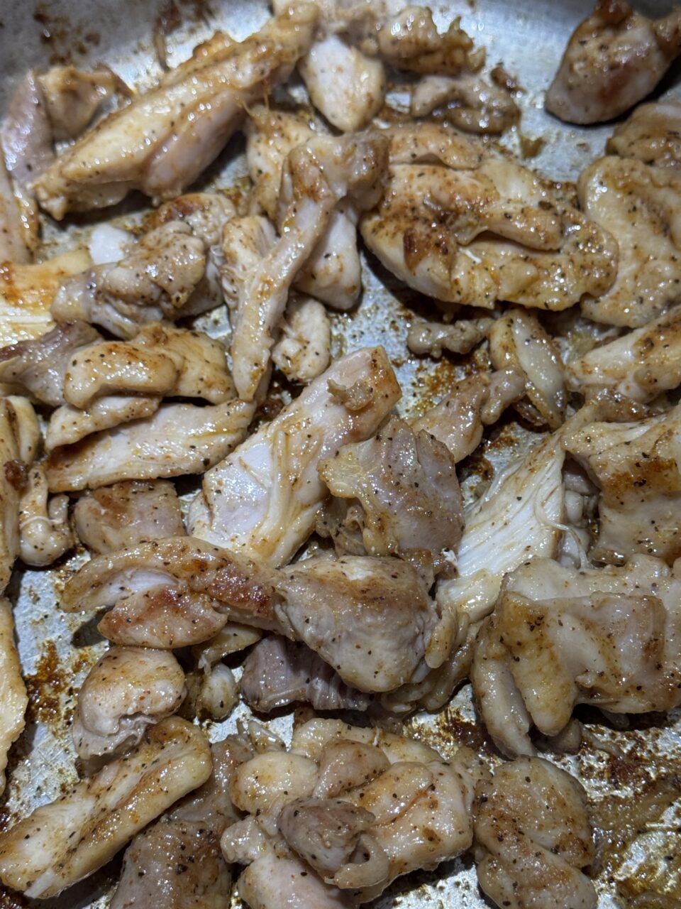 Place the chicken evenly in the pot of heated oil without touching each other. The remaining uncooked chicken will be cooked after this batch. When the chicken is cooked on that side it can easily be turned on the other side. Cook the chicken thoroughly so it starts to brown. Add a little vegetable broth and scrape the bottom of the pot if it sticking to the bottom of the pot. When it is completely cooked, remove it from the pot and set aside.